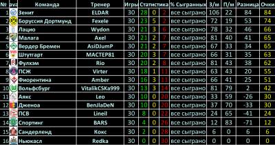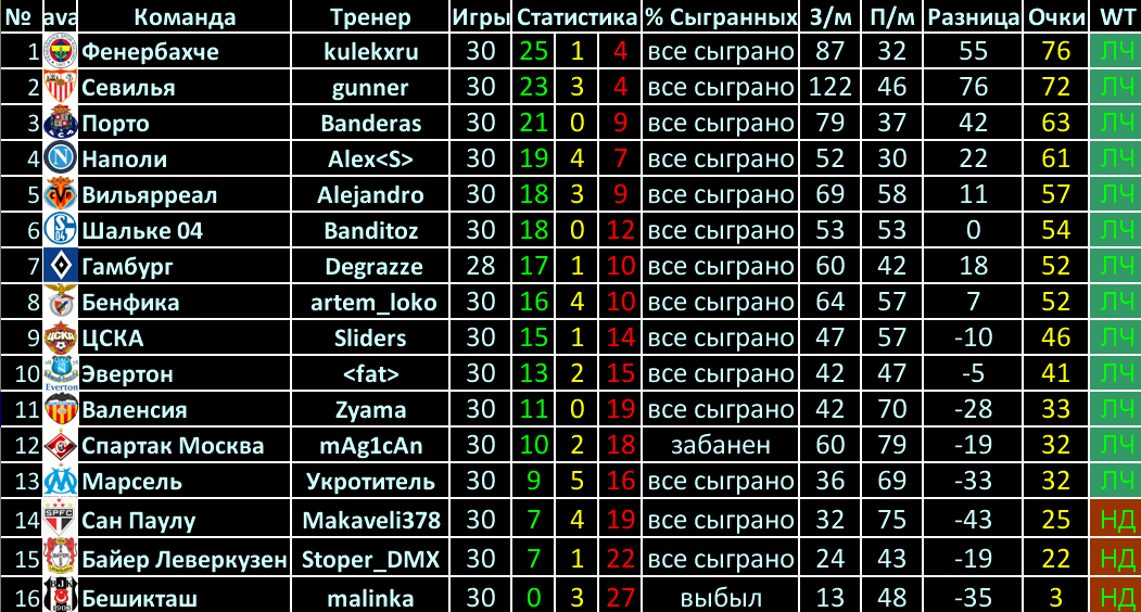 (Все Турнирные Таблицы)
