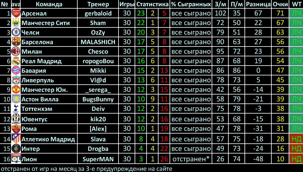 Турнирные Таблицы (старые)