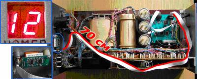 | Как подключить питание и управляющие сигналы к плате модуля индикации показано на рис.6. Важным преимуществом описываемого модуля перед другими схемами индикации является возможность каскадного соединения нескольких таких модулей в цепочку как показано на рис.7, что можно использовать, например, для индикации сразу нескольких цифровых значений в каком-нибудь приборе при том же наборе линий управления. А так как этих линий немного, и соединительный кабель между модулем индикации и микроконтроллерной схемой содержит всего несколько проводов, то модуль можно свободно размещать в любом удобном месте корпуса прибора. Пример подключения такого модуля индикации при помощи кабеля длиной около 70 смпоказан на приведенном на рис.8 фото, сопротивление "нагрузочных" резисторов R1..R5 при этом составляло 10 кОм и сбоев в работе не наблюдалось. Загружать информацию на отображение в модуль индикации удобнее всего через синхронный порт SPI, которым теперь оснащены почти все микроконтроллеры, выпускаемые, например, фирмойAtmel. Учитывая, что этот же порт используется часто и для внутрисхемного программирования микроконтроллеров, и разъем для этой цели на плате, как правило, уже установлен, то подключение к нему модуля индикации напрашивается само собой. Соответствие сигналов порта SPI линиям управления модулем индикации иллюстрирует схема на рис.9. По окончании последовательной загрузки информационных бит в модуль индикации микроконтроллер "защелкивает" их, подавая на вход модуля индикации RCK импульс с какого-либо своего выхода, условно обозначенного на схеме как P1. Вход модуля OE можно использовать для гашения индикатора на время стартовой неопределенности выполняемой микроконтроллером программы. Если же подать на этот вход импульсный сигнал, то изменением скважности такого сигнала можно регулировать яркость свечения индикатора. Учитывая особенности работы микросхемы SN74HC595D соответственно следует программно установить и режим порта SPI, а именно: • режим "Master/Slave" ("Ведущий/Ведомый") - "Master" ("Ведущий"); • загрузка очередного бита информации - по перепаду сигнала SCK из лог. "0" в лог. "1".